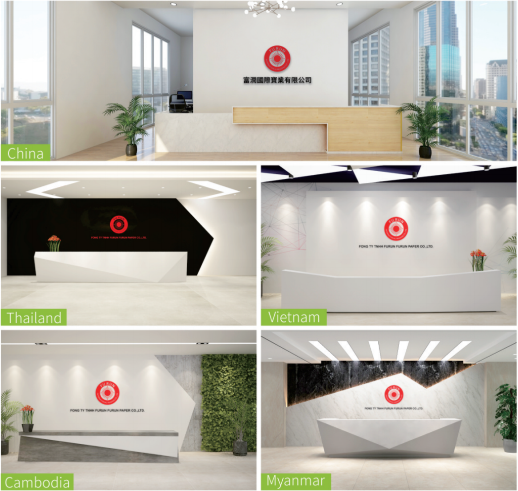 Hiện nay, chúng tôi có 5 cơ sở sản xuất giấy trên thế giới (Trung Quốc, Việt Nam, Thái Lan, Myanmar, Campuchia).